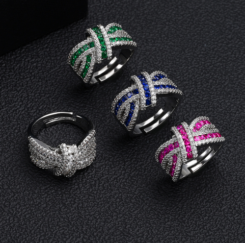 European and American explosive high-end bow index finger ring, diamond-set zircon ring, women's niche design light luxury jewelry