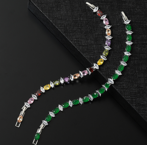 European and American Hot Selling Jewelry Bracelet Emerald Zircon Bracelet Women's Niche High-end Sense Birthday Gift Hand Jewelry Wholesale