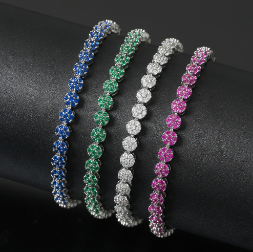 European and American Jewelry Cross-border New Copper Diamond Bracelet Women's Frosty Style Flower Full Diamond Zircon Bracelet Jewelry Wholesale