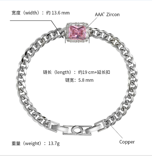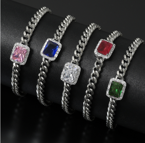 European and American Jewelry Zircon Bracelet Women's Popular Versatile Red Sapphire Inlaid Women's Hand Decoration Cross-border Jewelry Wholesale