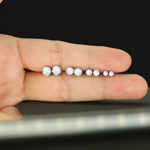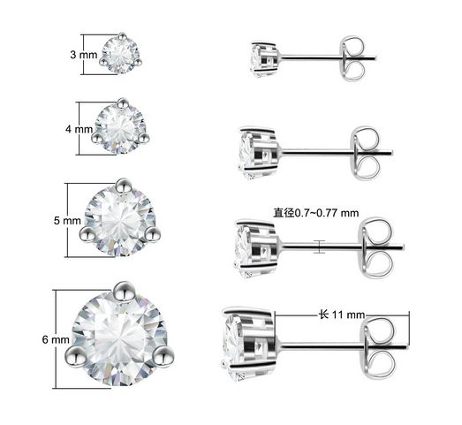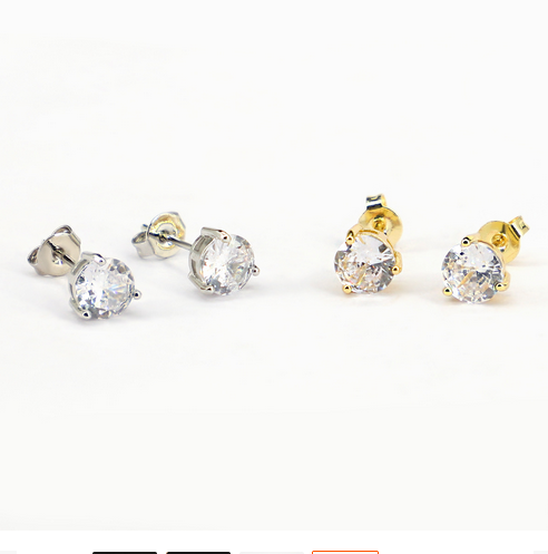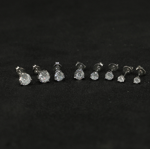 European and American simple small stud earrings delicate copper inlaid zircon earrings women's Korean version three-prong classic simple ear piercing jewelry wholesale